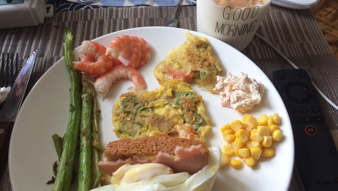 Ingredients for a weight loss breakfast: 6 prawns, 2 eggs, 1 okra, 2 asparagus spears, 2 slices of homemade bread,…